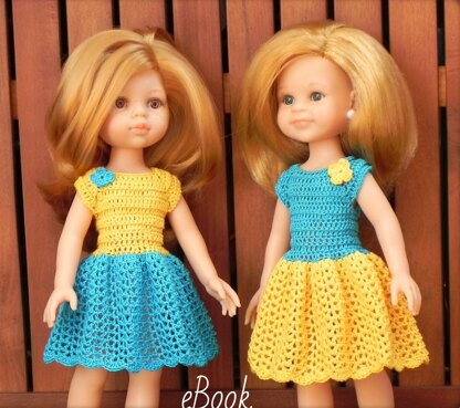 This is a crochet pattern how to make a dress for a 13-inch doll.