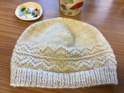 **Drifting Lines** has a simple knit and purl design that drifts around the hat before moving into a stockinette top. With both charts and written instructions, knitters can choose the most comfortable way to follow the pattern.
