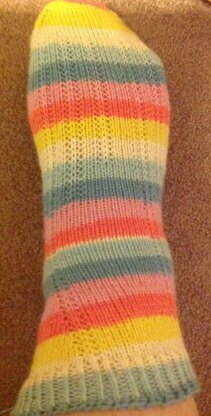 A pattern working great with self-striping and also variegated sock yarns. The columns of slipped stitches will not interrupt the stripes but add texture to the fabric as well as keeping the sock fun to knit.