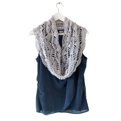 Feel light and summery wearing this weightless cowl worked in the hairpin lace crochet technique! Driftwood cowl is made with four hairpin lace strips joined in a manner that creates gentle waves.