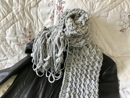 Warm, chunky and so chic. Fringe adds a nice touch. Completely reversible. Looks great with your jacket or simply with your sweater. Easy crochet stitches throughout.