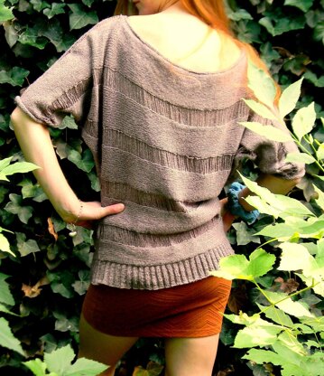 This top is a perfect addition to your Spring and Fall wardrobes; the lightweight material and dropped stitch details allow air to flow freely while the wool content of the yarn will make sure this light layer fends off the chill. The interesting construction allows the knitting to surprise you at various points, making its grand reveal later in the process rather than sooner. With an easy shape and loose fit, the top is meant to be worn with a few inches of positive ease and will flatter a variety of body shapes and sizes.