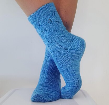 Worked top down from a sweet picot cuff into an intriguing but simple lace these socks much like Duchess Daphne of Bridgerton really are incomparable.