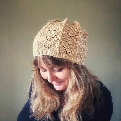 Beanie hat with lace work throughout. Perfect for squishing into a beach bag ready to be whipped out when the temperature drops.