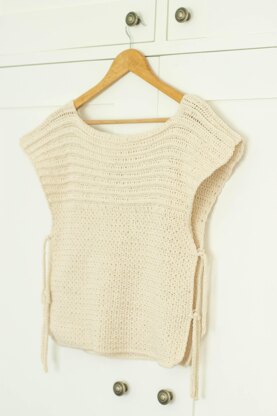 Inspired by the sweater-vest and crop top trend this tie-side top offers a wearable alternative. The raised treble stitches along the neckline draw the eye, while the tapered shoulders create a flattering shape.