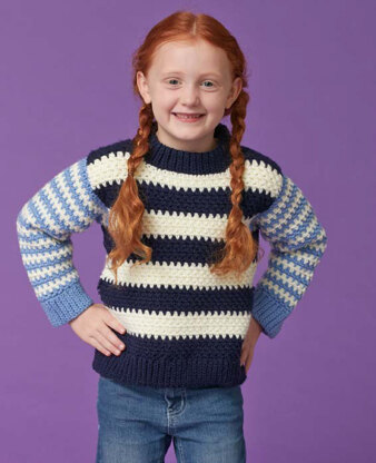 Duo Stripes Kids Pullover in Caron United - Downloadable PDF