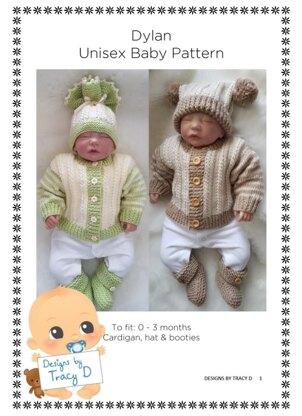 Dylan Baby unisex cardigan, hat and booties knitting pattern