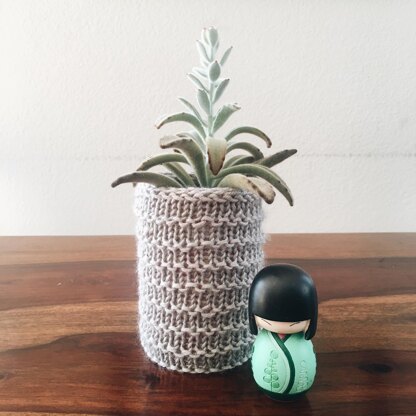 The Cozy can cover is knitted in the round from bottom up. The base is worked in a Garter Stitch pattern. Stitches are then picked up along each side and the can is worked in the alternating smooth ridge stitch pattern, for textural and visual interest. You need to know how to knit, purl, basic increase, and decrease.