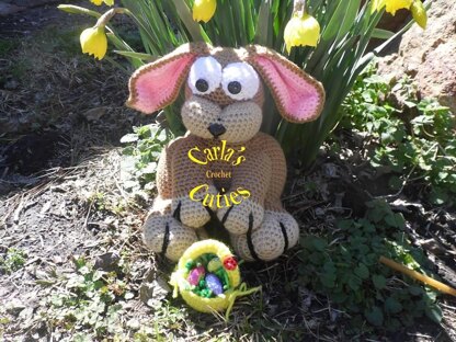 The finished Easter Bunny doll is approximately 10 inches tall. I used 15mm black animal eyes, and a 15mm animal nose for this pattern. CHOKING HAZARD!! I strongly suggest using cut out felt and glue instead of any removable buttons or other plastic pieces, if this doll in intended for children.