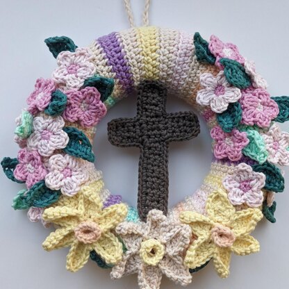 This pattern incorporates the Easter cross, blossoms and daffodils, all in springtime, pastel shades.