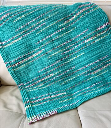 This throw is a very easy and relaxing project using a self-striping DK weight yarn that does all the colorwork for you. You can easily adapt this design for worsted weight yarn simply by upsizing your crochet hook to a larger size (I or 9/5.50 mm). It is also a great candidate for a temperature blanket or even a stash-buster throw, using your leftover yarn! If you want to make this one wider, simply add multiples of 6 to the original starting chain.