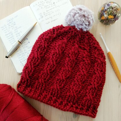 Worked from the bottom up, you can easily work in extra repeats to make a larger hat. The pattern includes a video to show how the cable cross over is worked.