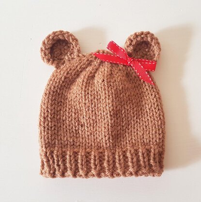 Easy Chunky Knit Baby Bear Hat