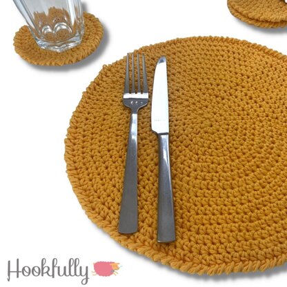 The pattern is written in USA terminology. You will need to know basic crochet stitches (sc, hdc) as well as the reverse single crochet (instructions included). The crochet pattern is 4 pages long and includes progress photos. Finished sizes are 11cm diameter for the coaster and 30cm diameter for the placemat.