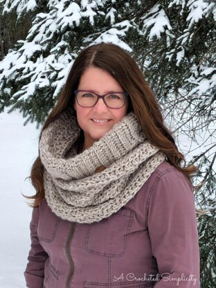 This hooded crochet cowl is perfect for layering in the winter. On sunny winter days I wear it down as a regular crochet cowl, but on the bitter cold winter days I pull it up over my head and wear it as a crochet hood.