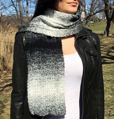 This scarf is worked in back-and-forth rows, utilizing crochet chains and single crochet stitches. The crochet chains are then laddered up (like making chains from chains) to give the scarf its crochet cable effect. This technique is a variation on Jacobs Ladder and it is not difficult.