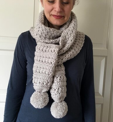 Easy Crochet Scarf Pattern for Women: Two Pom-Bombs Crochet Scarf