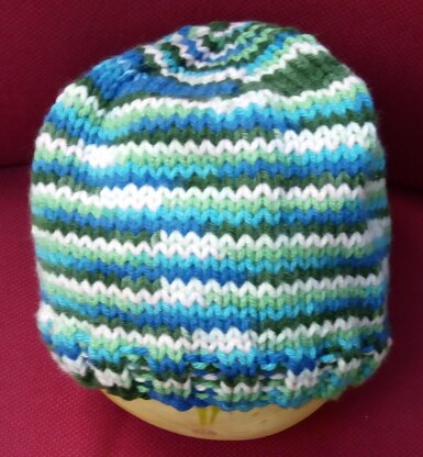 This hat is really easy and quick to knit – it is excellent if you need to make a lot of hats, for a group to all wear the same thing, or to give everyone in your department a seasonal gift (that’s why I invented it), or to sell at a charity event. I love the fact that the decreases for the top spiral in to the middle – it shows more if the colours are simple – it just adds a pretty bit of detail. I love to use the Paintbox chunky pots, you get three hats from a ball, but any chunky yarn will do - 70g or so per hat.