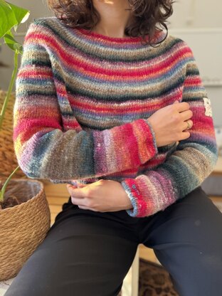 The Easy One 2 (cropped version) is worked top-down, beginning with the neckband. After completing the neckband, short rows are used to shape the neckline, creating a deeper front neckline than the back. This design feature adds a flattering, comfortable oversized fit, allowing the front to sit lower than the back for a more relaxed silhouette.