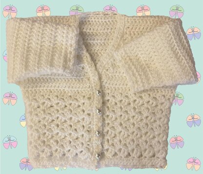 This pattern is for an easy patterned baby/child crochet cardigan. The back and fronts are worked all in one until seperating for the armholes which means less sewing up. I have used James Brett Supersoft DK which is a lovely soft acrylic yarn but any other double knitting yarn can be used providing the tension is matched.