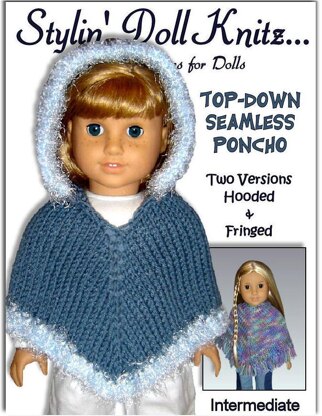 PDF Knitting Pattern, Doll Clothes, Poncho, Fits American Girl Doll & 18 inch dolls. This pattern comes with two versions: Seamless Poncho and Hooded poncho. Combining both patterns will give you many different variations. Made on large needles, knits up VERY fast!