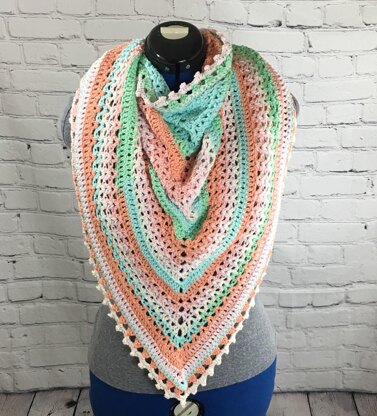 This shawl is the perfect spring and summer time accessory. It looks great with jeans or dress up for a night on the town.