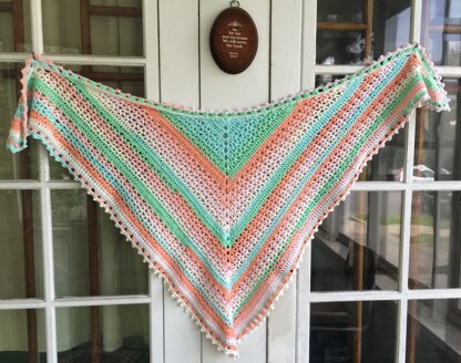 You will love how quick and easy shawl this shawl is to work up. There is just two different stitches that are in a seven-row repeat. Once you complete the first repeat it is very easy to remember.