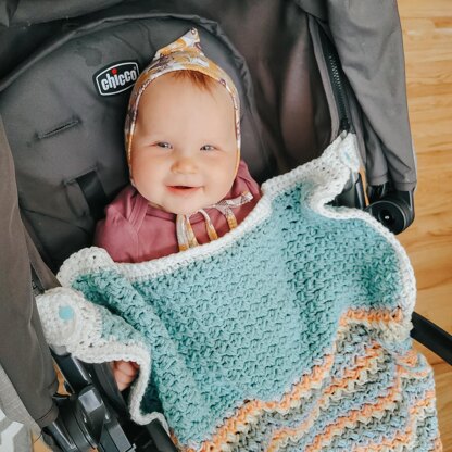 The Easy Stroller Blanket is a textured, beautiful but simple pattern that is appropriate for crocheters of all levels. It includes instructions to add optional straps so your blanket can attach to the stroller, which keeps it from slipping off onto the ground. Your kiddo can stay snuggled underneath, even when they're wiggly! (AND you won't have to retrace your steps looking for a lost blanket).