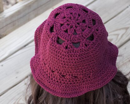 The hat can be worn as a summer sun hat or to keep warm on a crisp summer day. The hat has a brim to keep your eyes shaded. I has a pretty lacy pattern.