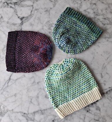 I came up with the design for my latest pattern, the Easy Tweed Beanie out of a simple need: I really wanted to use up the beautiful smaller amounts of wool that I had left from previous knits, and these lovely hats became the perfect solution! You can use the pattern to create truly unique hats, as the combination of yarns you choose is up to you! The interplay of colours adds such interest to the fabric; creating a one-off artisan item of clothing. Each hat can use yarn which is leftover from other projects, making this a great eco-friendly and stash-busting pattern. The hats are knit using a colourwork technique which is perfect for beginners: slip stitch knitting, or mosaic knitting. You only work with ONE colour on each row, so no need to worry about carrying the yarn at the back of your work. I wrote the pattern to suit worsted or Aran weight yarn, and it is worked in the round. Two sizes of circular needle are needed: US7 & US8 (4.5mm & 5mm).