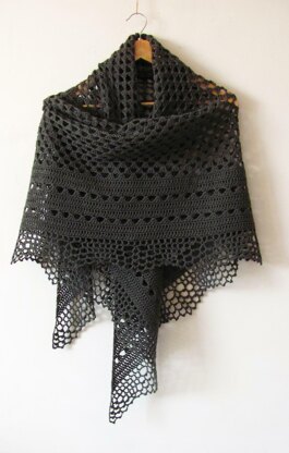 Echo Forest is a feminine triangle-shaped shawl worked top-down as one piece. A classic half granny square decorated with solid border panels and crispy, airy edging. Finished size depends on yarn you use, pattern will work with any yarn weight from Thread to Sport. Pattern both written and charted.