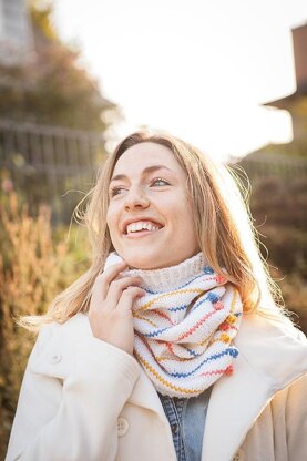 Complimentary colours and sweet looking bobbles make this cowl a stand-out accessory. A quick knit you can wear through so many seasons, you'll be making numerous versions over many years.