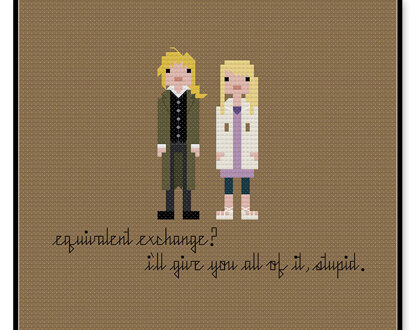 Ed and Winry - PDF Cross Stitch Pattern is a Beginner Embroidery pattern by HugSandwich, available as a Downloadable PDF and includes instructions in English. Super fun to make, this pattern could be your next masterpiece!