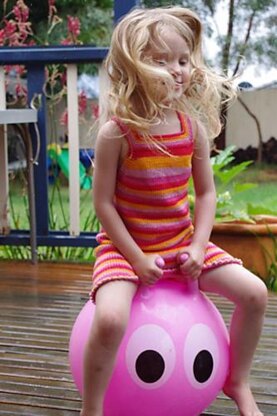 What sets this dress apart is the particular attention paid to the finishing details,; the depth of the armholes, good chest coverage, the neatened joins, details for working jogless garter stitch, such subtleties combine to give the finished garment a neater finished look.