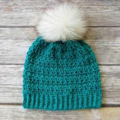 The Edgewater Hat crochet pattern uses the same fun stitch combo as the Edgewater Sweater Dress. This hat is a quick and easy project using a light worsted weight yarn of your choice!