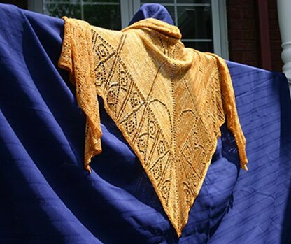 This triangular shawl was inspired by lace-like details on the Eiffel Tower. It is a charted and written lace design, with lace knitting on every other row. The shawl is knit from the top centre out, beginning with a tab cast on. As much of the body is stockinette, it is a fairly quick knit. Two repeats of the second chart can be done to increase the size from 3 arches to 5 arches.