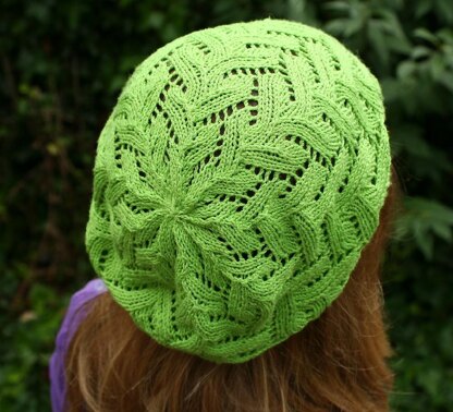 This easy lace beret knits up quickly in fingering weight yarn.