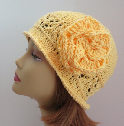 Materials Needed #4 worsted weight cotton or other type of yarn – for hat 90 yards; for flower 30 yards U.S. Size 7 16-inch circular needles and dpns for decreases 10 stitch markers with one being distinguishably from others to use as end of rnd marker Crochet Hook I; for smaller flower use Crochet Hook H