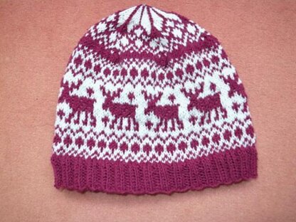 When I had drafted the [Nordic beanie][1] I also liked to make a matching Norwegian style beanie in red and white with an elk on it. And here it is!