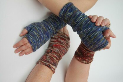 Pattern is for a pair of fitted fingerless gloves that are knit in the round, including some lovely button loop detail at the wrist.