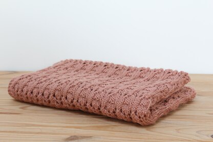 Ellis is a pretty lace blanket knitted in DK weight yarn.