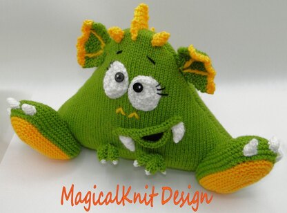 This is Elmo the dragon, a lovely cushion knitted using 2 straight knitting needles, easy to follow pattern, with row by row written instructions and photo-tutorial.