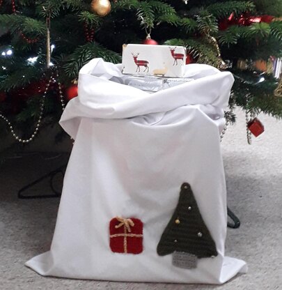 I made the tree and the present for my younger son's Christmas Jumper day as we were a bit on the drag with getting organised and hadn't bought a jumper, but then I unstitched them from his woolly and used them to jazz up a present sack too. (A handy white pillow case made the crocheted tree and present really stand out!) I'm intending to use them in a few other ways too - as gift tags, and tree decorations. I'll just make some more, perhaps a little smaller! Who knows, I think they might work well as bunting..!