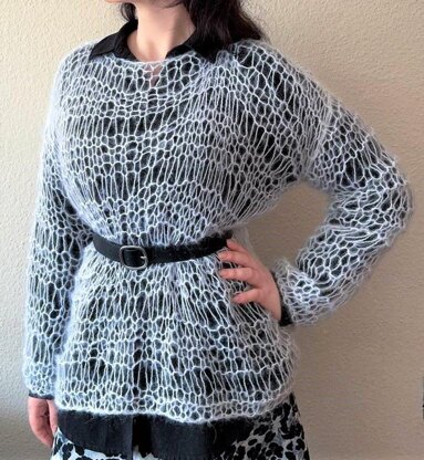 Unique design of the jumper with elongated loops is easy to make and unusual to look. The jumper is easy to style for the city format: jeans, pants or skirt combined with a top or shirt beneath.