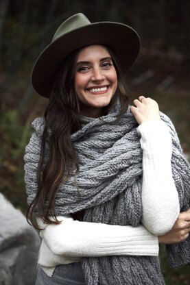 Squishy columns of chevrons and diamonds pop in this oversized blanket scarf, presenting a modern take on a classic concept. The embossed, reversible fabric looks almost cable-like but is achieved using only knits and purls for a satisfyingly addicting project that’s suitable for beginners.
