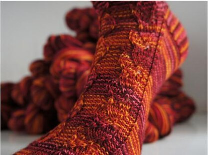 The patterns encircling this sock instantly remind me of the flickering flame atop a candle. Enjoy the simple lace, and slip stitch patterns and watch your ember socks grow. Worked top-down with a traditional heel flap This sock has ‘classic construction’ written all over it, with delicate patterns working their way from cuff to toe.