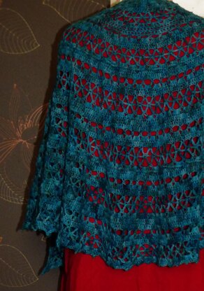 Horgolt női félkör alakú kendő. 2 motring 400m/100gr, 100% superwash merino Fonalflanc által festett fonalból készült. A mérete blokkolás után 170x60 cm. Bármilyen fonalból elkészíthető és a mintaegységek ismétlése révén bármekkora méretűre horgolható. Kérlek, vedd figyelembe, hogy a kendőd úgy lesz igazán szép, ha blokkolod, de legalábbis formára igazítva szárad meg. Ha van rá lehetőséged, emiatt használj 100% gyapjú, vagy valamilyen %-ban gyapjú tartalmú fonalat