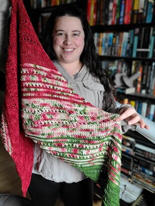 This shawl uses DK yarn (several testers used 3 skeins of hand-dyed), making it absolutely perfect FOR EVERY SEASON!! And it’s asymmetrical shape gives so many versatile styling options! And the texture - ohhhh, the texture. Raised stitching, bean stitches and crossed stitches give this shawl incredibly depth!