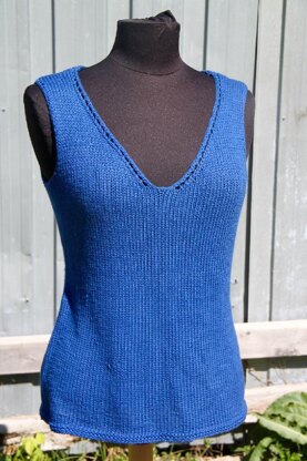 Fil : [Phildar Tendresse][1], 75% viscose et 25% polyamide, 50g, 98m. Colori : Naval Taille : P, M, G, TG, TTG (Mesure finie à la poitrine : 76, 86, 96, 106, 118 cm or 30, 34, 38, 42, 46 1/2" Note : Ce modèle est porté avec un aisance negative de 5 cm OU 2’’ à la poitrineQuantité de fil : 5, 5, 6 ,7, 8 balles Échantillon : 18 m x 26 rgs = 10 cm (4”) jersey end avec les aig 5.5mm Aiguilles : 5.5mm (US 9) circulaire 80cm (32’’) Crochet : 4,5mm (pour la finition d’emmanchure) Autre matériel : 2 marqueurs,1 aig à laine.