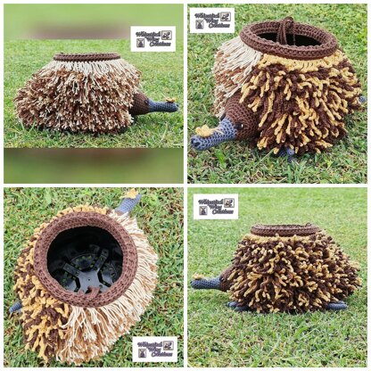 Enzo the Echidna Pot Plant Cosy comes in two styles - a beginner version (latch-hooked spines and basic features) and an intermediate version (crocheted spines and more detailed features). Both a US and UK version for each is supplied. I have nicknamed my prototype 'Frankie', as he is a combination of the two styles and two different colour schemes .